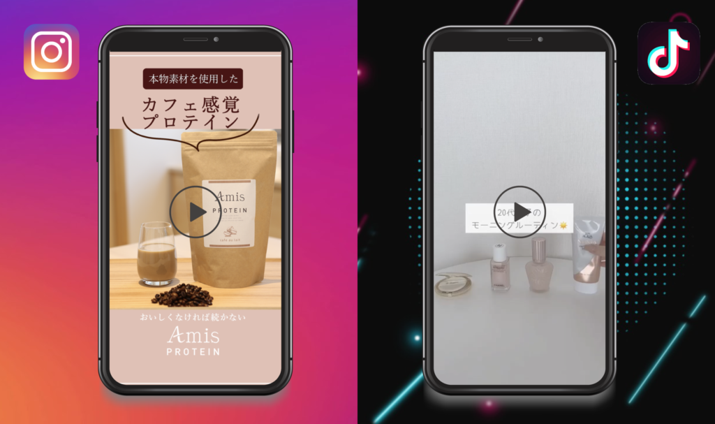 Amisプロテイン様のSNS動画マーケティングサポートとして、Instagramでの広告用動画制作、TikTokでのインフルエンサーを活用したタイアップ投稿を実施させていただきました。